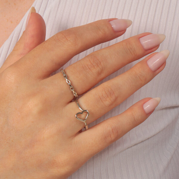 Kit de anéis aro coração liso vazado junto anel aro corrente banhado em ouro branco