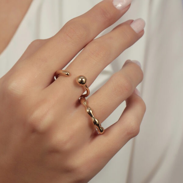 Kit de anéis ondulado e regulável liso com bola na ponta banhado em ouro 18k