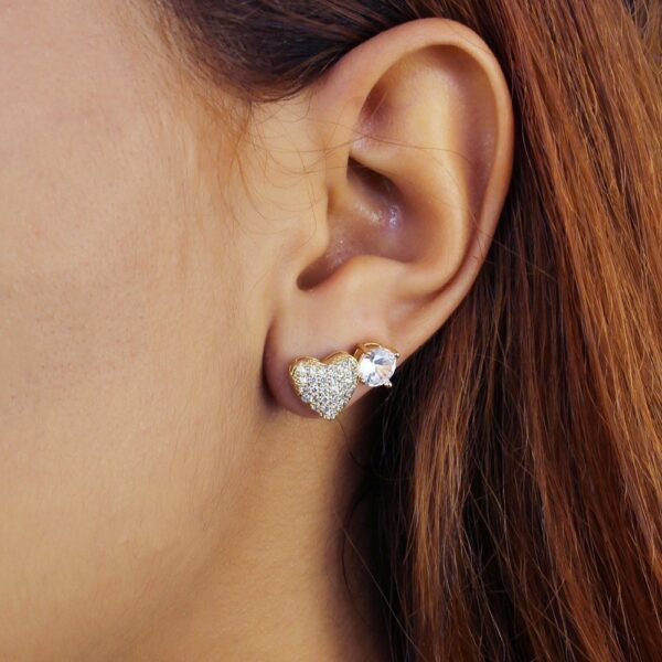 Kit de brinco em coração e ponto de luz com zircônias banhado em ouro 18k