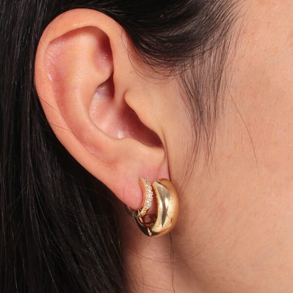 Kit de brincos com argolinha grosa lisa e argolinha cravejada banhada em ouro 18k