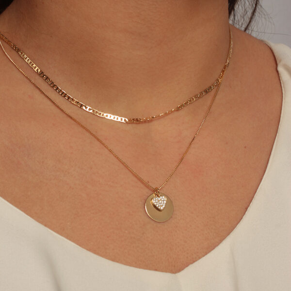 Kit de colares pingente medalha com coração cravejado banhado em ouro 18k