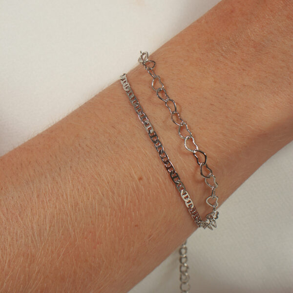 Kit de pulseiras piastrine com elos corações banhado em ouro branco