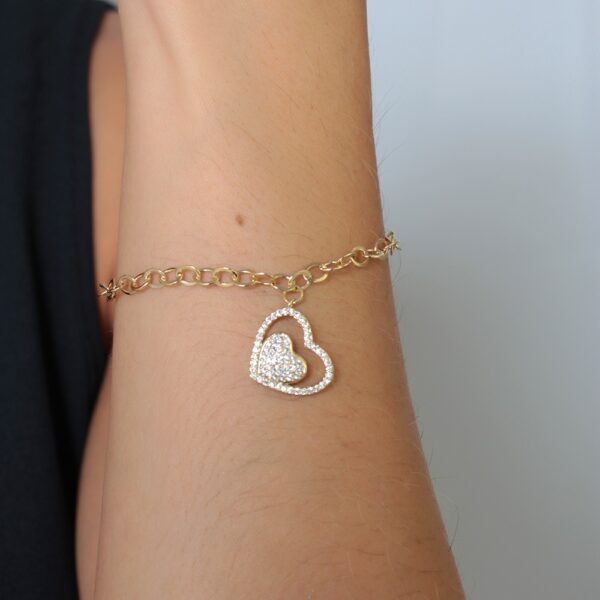 Pulseira com pingente de coração com detalhes cravejados de zircônias banhado em ouro 18k