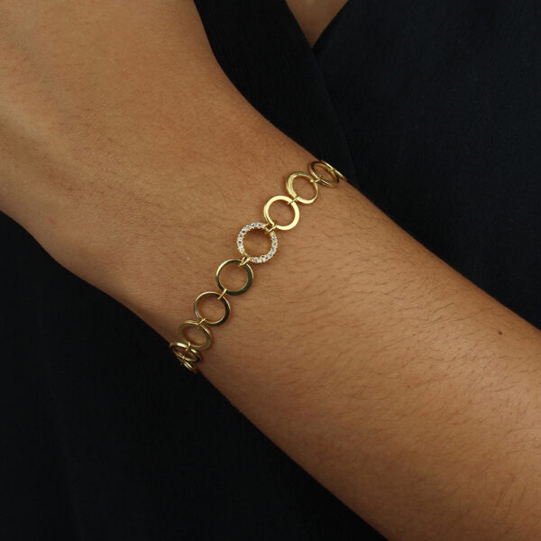 Pulseira de círculos com detalhe cravejado de zircônias cristal banhado em ouro 18k