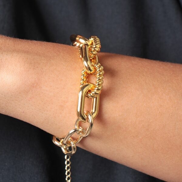 Pulseira Dual Gold elos grandes com detalhes torcidos