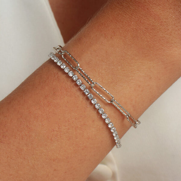 Pulseira dupla fileira de zircônias e elos alongados slim banhado em ouro branco