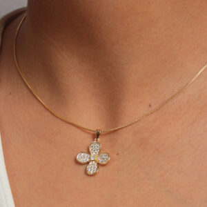 Conjunto flor quatro petálas cravejada banhado em ouro 18k