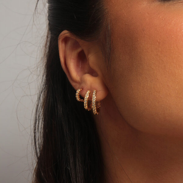 Trio de argolinhas cravejada texturizadas banhado em ouro 18k